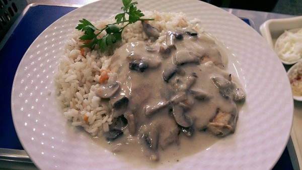 Piept de pui cu sos de smantana si orez cu legume