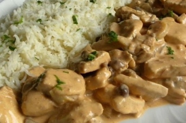 Cotlet in sos de ciuperci cu bacon prajit si cus cus