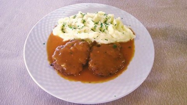 Chiftelute marinate in sos de rosii si piure de cartofi