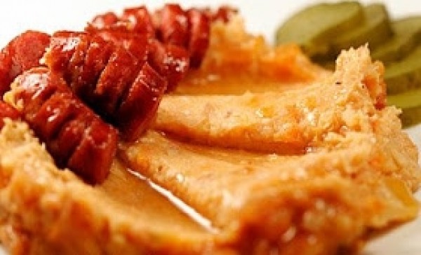 Fasole batuta si carnati prajiti